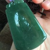 冰糯种满绿悟道牌 翡翠吊坠 尺寸63*37*4.4