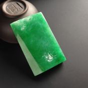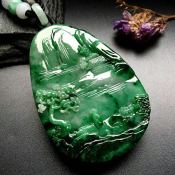 满绿山水牌 翡翠吊坠 尺寸: 58-40-9mm