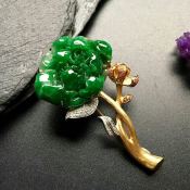 满绿花开富贵 翡翠吊坠 尺寸: 38-29-9mm