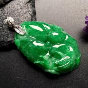 满绿连年有余 翡翠吊坠 尺寸: 44-28.5-9mm
