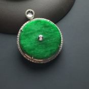 糯种满绿翡翠吊坠 平安扣翡翠吊坠 尺寸:48-6.6毫米