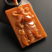 糯种黄翡吊坠大日如来 尺寸:81-55-8.5毫米