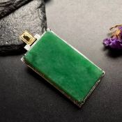 糯种满绿 平安无事牌翡翠吊坠 裸石尺寸: 41-23-4mm