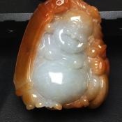 糯种飘花 大肚佛翡翠吊坠 尺寸51.0*52.2*15.5mm