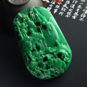 细糯种满色阳绿山水牌翡翠吊坠 尺寸58-35-10毫米