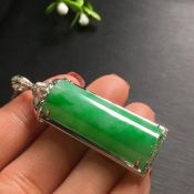 糯种阳绿 竹节翡翠吊坠 18K白金南 尺寸49.8*16.2*9.0*33.6*14.6*5.5mm