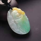 糯冰种黄加绿弥勒佛翡翠吊坠 尺寸47-30-10毫米