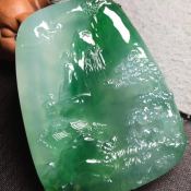 冰绿花山水翡翠吊坠 尺寸50.3*38.8*6整体58.2*39*10.5