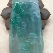 老坑料冰种飘阳绿《山水牌》翡翠吊坠