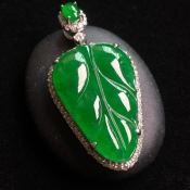 玻璃种满色叶子 翡翠挂件 裸石尺寸:26*17