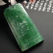 冰种绿底指指高升 翡翠吊坠 尺寸66-36-6毫米