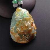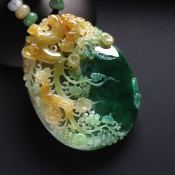 巧雕双彩花开富贵 翡翠吊坠 尺寸46-33-11毫米