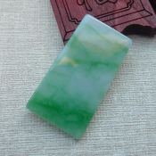 精雕水润豆阳绿 平安无事牌翡翠吊坠 规格:37.7*20.7*4.1mm