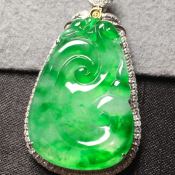 高冰满绿如意 翡翠吊坠 裸石尺寸34.3*23.5*3.5