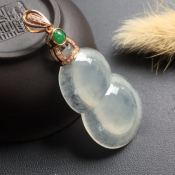冰种晴水 葫芦翡翠吊坠18k金豪华镶嵌