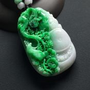 巧雕带色喜上眉梢 翡翠吊坠 尺寸:59-37-10.7毫米