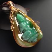 糯冰种黄加绿翡翠吊坠 18K黄金配红宝镶嵌 尺寸71-46-23毫米