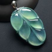 冰种飘花金枝玉叶 翡翠挂件 尺寸:47-31-6.3毫米