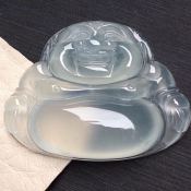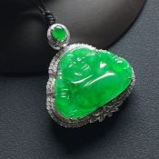 冰种阳绿笑佛 翡翠吊坠 整体尺寸:31-27.5-9.3