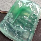 高冰甜绿小桥流水人家翡翠挂件 名师雕刻完美水润尺寸53.5*43.6*6.8