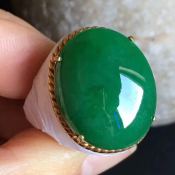 翡翠被切割成蛋面,镶嵌在戒指上,华丽