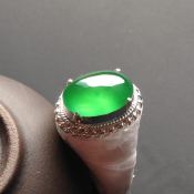 一对高冰满绿蛋面 缅甸天然翡翠戒指7.6*6.2*3.8--10*7.3*5