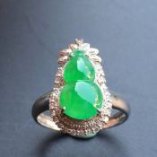 冰种阳绿 18k金镶嵌葫芦戒指大小11.5*7.3*5mm