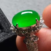 大颗冰种正阳绿 缅甸天然翡翠戒指