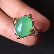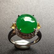 重金镶嵌 冰种艳阳绿翡翠戒指