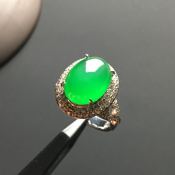13-6-5寸冰种阳绿蛋面 缅甸天然翡翠戒指
