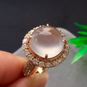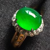 18K金镶钻 冰阳绿蛋面翡翠戒指