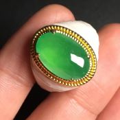 高冰蛋面翡翠戒指 色泽亮丽