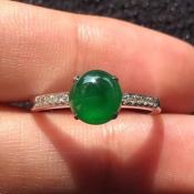 13-6-5寸冰种阳绿蛋面 缅甸天然翡翠戒指
