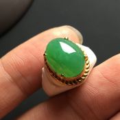 高冰种艳阳绿色标 缅甸天然翡翠戒指