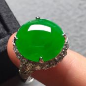 15.2-10.2-4.4毫米高冰阳绿 缅甸天然翡翠戒指