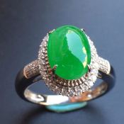 18k金镶嵌 冰种甜绿蛋面翡翠戒指