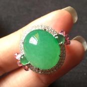 8.3*6.3*3.9mm冰满绿戒指 缅甸天然翡翠戒指