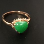 冰阳绿 翡翠水滴戒指 18k金镶嵌钻石