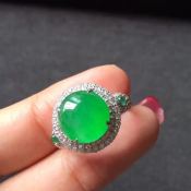 高冰种艳阳绿色标 缅甸天然翡翠戒指