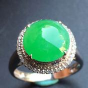 冰糯种绿色 缅甸天然18k金伴钻戒指翡翠