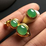 冰种阳绿蛋面戒指 真金真钻镶嵌 玉质细腻