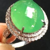 冰种阳绿蛋面戒指 真金真钻镶嵌 完美