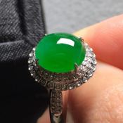 冰种阳绿蛋面 缅甸天然翡翠戒指 真金真钻镶嵌