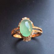 冰阳绿 翡翠水滴戒指 18k金镶嵌钻石