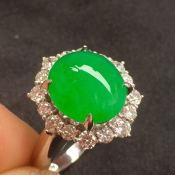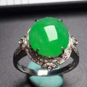 冰糯阳绿蛋面 翡翠戒指 真金真钻镶嵌 玉质细腻