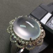 11.3*8.2*2.5寸冰种墨翠 18k白金伴钻翡翠戒指女戒