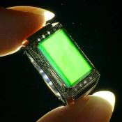 冰种墨翠 打灯透绿翡翠男士戒指