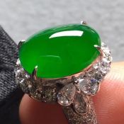 高冰帝王绿 翡翠戒指15.9-9.7-3.5毫米