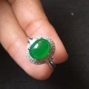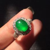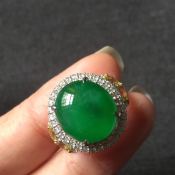 顶级玻璃种 帝王绿 缅甸天然翡翠戒指