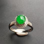 冰阳绿 缅甸天然翡翠戒指 色辣 水头足